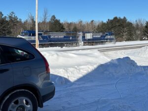MSP train passing thru Frederic, stay away from the Tracks!