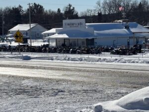 Another perfect day for riding in northern michigan. Temp has made it to 25 and sled traffic has been steady. The Swamp has been busy all day and its saturday and that makes me think about Frederic Inn prime rib. Went down to Houghton Lake last night for the second friday night at Tip Up Town. I havent been down there in 30 years or probably more. Once a year the State Police come thru Frederic on the train to catch riders doing rail road trespass which can be as simple as being to close to the tracks so the moral of the story is STAY AWAY FROM THE TRACKS. Usually the train has a MSP sign on it but it did not today but I did see a sheriff car following along on old 27. They have been thru twice this afternoon and it was just 2 engines which never happens any other time. Not to much else to say. Thanks for checking in. Pete