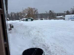 We had another few inches over night but south of Grayling got pretty hammered last night. I should be out riding right now as its pretty nice out there. The pic below is at the bridge that some guys just sent me and thats the second time I have heard of someone getting to the bridge. Thanks for checking in. Pete