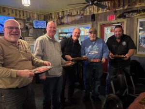 Its been a great day to ride in Frederic, Sled traffic has been steady all day. Riders stopping in for goodies and to say hi. I would say this has been the busiest day of the season with the amount of sleds that have been around. Dinner last nite at the Frederic Inn was great and you can see the five of us showing off our meat. I was in deep in sleep way before midnite. Also a shout out to the Hummell crew from Atlanta Georgia that came in to ride with their brother Francis Hummell who also is a local groomer driver for the Grayling club.