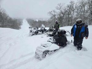 Trails are open, I have heard sleds out but havent seen any, We went for a ride yesterday and my ski dud stranded me, The battery went dead, but Big John pulled me back along with Timmy who was also with us. I put a new battery in it and I loaded her up for the next time That was a 20 mile ride with a 5 mile tow. Snow was fantastic with still alot of trees hanging off of trees. Still a short but great ride. I am still moving snow as there is still so much of it. Thanks for checking in. Pete