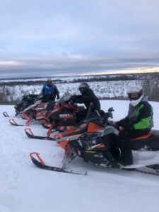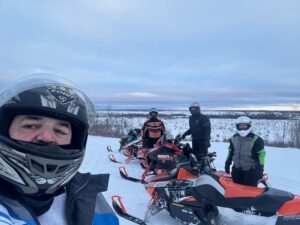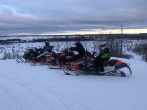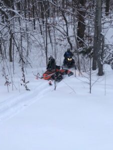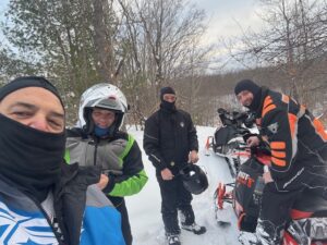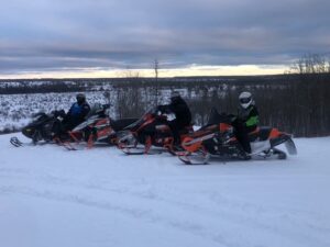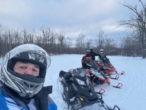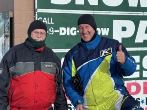 Its a nice calm monday morning with no new snow. I never put an update out on sunday but we had about 5 inches of new snow late saturday night. It was very quiet around Frederic yesterday as the snow came late but for those that got to ride it it made a pleasant surprise. That is including me. We headed out for a ride about 3 and found alot of great snow and rode over to Lovells and around the air to ground and back. I acutually saw the grayling groomer out but he was coming from behind the high school and turning on to 47 trail. Of course trail 7 still had not been touched and it beat me up again. I sure dont know what the deal is on that. We found alot of deep snow out there and while its supposed to be around 32 today and tommorow it should turn colder towards the weekend so I think it will be o.k. Still alot of ice underneath and we did hit plenty of wet water holes last night too. It was about 10 by the time I got back home. All the pics below are from our ride yesterday and the other 2 guys standing by the shop were a couple of canadians (eh) that stopped in. Brian and his Uncle Wayne King stopped by. The cool thing on this pic is Uncle Wayne is 84 years young and still riding his sled. Thanks for stopping by guys. Thanks for checking in. Pete
