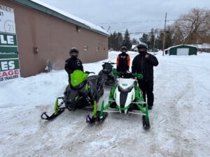 No new snow overnight. 25 degrees on a cloudy friday morning in downtown Frederic. Just had a group of guys ride in from down around Dayton OHio. They rode to the bridge yesterday. Picture below is of them outside here at Sledheads this morning. Another clipper supposed to come tonight. So we are set on snow and sled traffic has still been slow still. Lets see how it goes this weekend. Here is a video we made years ago. https://youtu.be/luoEuA9DzqQ?si=jDZlpzDlwjiup8f7