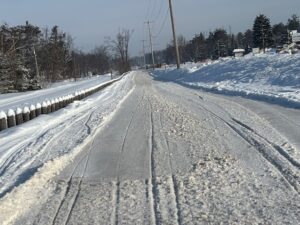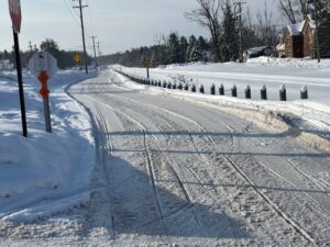 So its about 10 a.m. at 33 degrees and sunny this morning in downtown Frederic. I just returned from an early morning run to home depot in Gaylord and I have to say that all the way up I 75 to exit 282 in Gaylord looks like perfect winter day in northern michigan with everything in the woods and distance looking nice and snow covered. To bad today they claim we might hit 50 BUT I talked to many riders yesterday and everyone saying the same thing that trails are pretty darn good. I drove back from Gaylord to Frederic along trail 7 and pics below show how things look with fresh grooming on trail 7. Took pics both north and south of trail 7 across from Porter Haus and saw 4 sleds out and about before I got back here. Pics below for your viewing pleasure. Thanks for checking in. Pete
