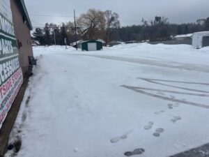 WEll it is still nice and white out there its a crunchy 37 degrees. Roads and crossing are dry. Still tons of snow in the woods but it doesnt look like we are gonna get much new. Trails I passed on the way here are still white. Warmth is not our friend but for those die hards I feel like its still possible to ride some. I wish I had better news. Pics below I just took out front and as you can see its still white. Sure wish I was with the Darkside Adventures guys. Also for the second day in a row the Mackinaw bridge is closed at this time 10:22 a.m. due to falling ice. Thanks for checking in. Pete